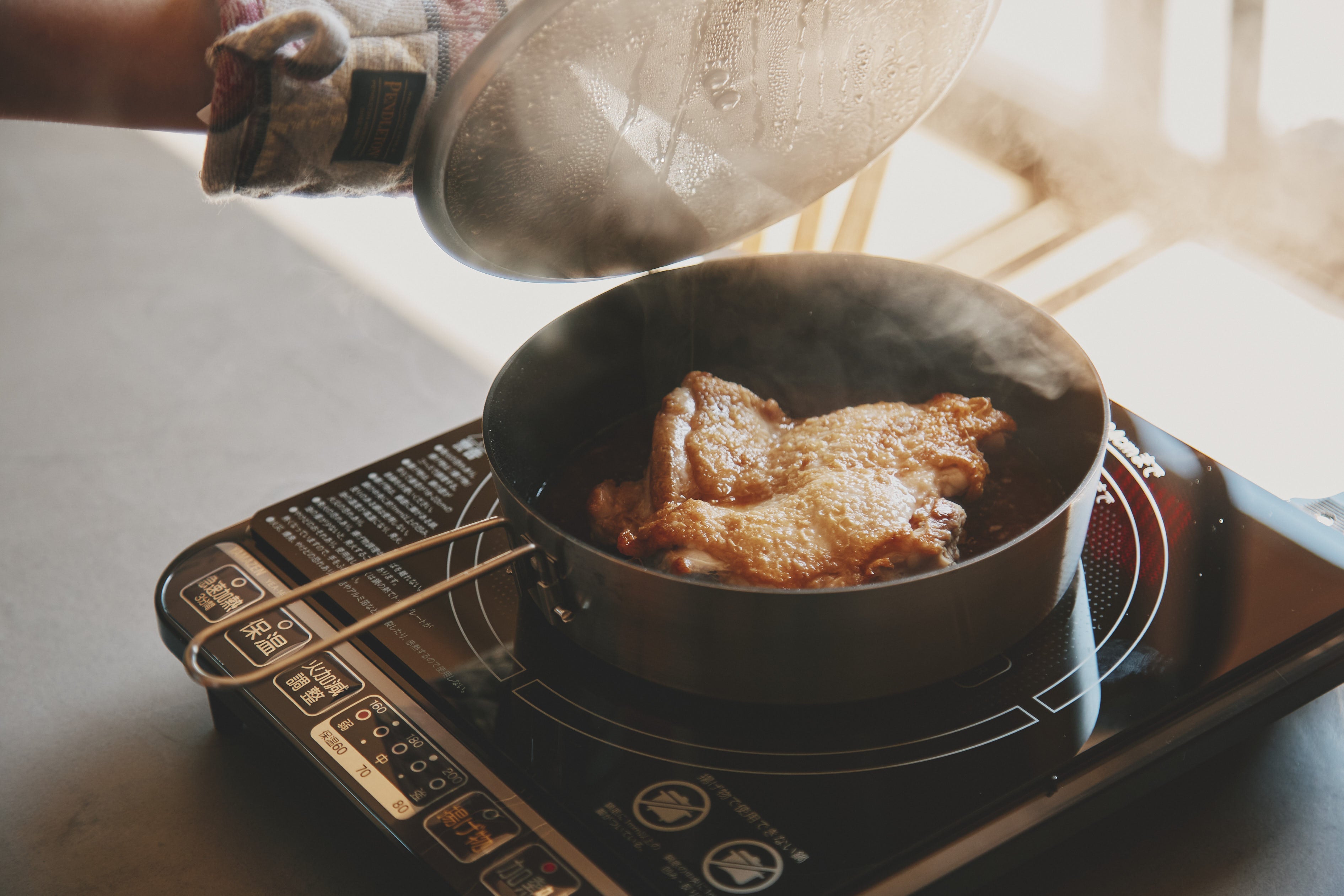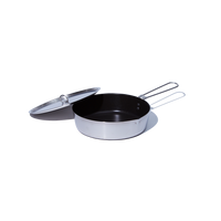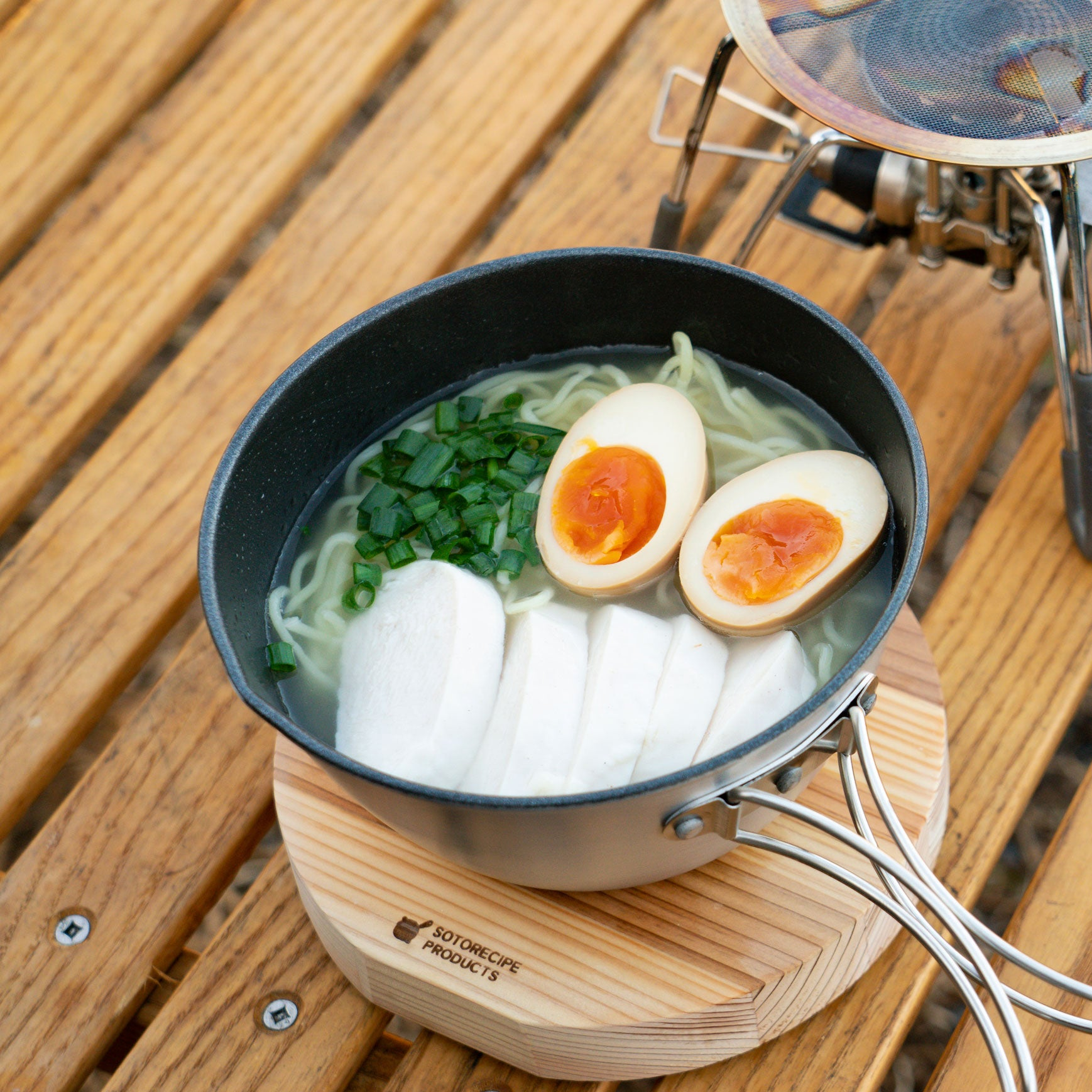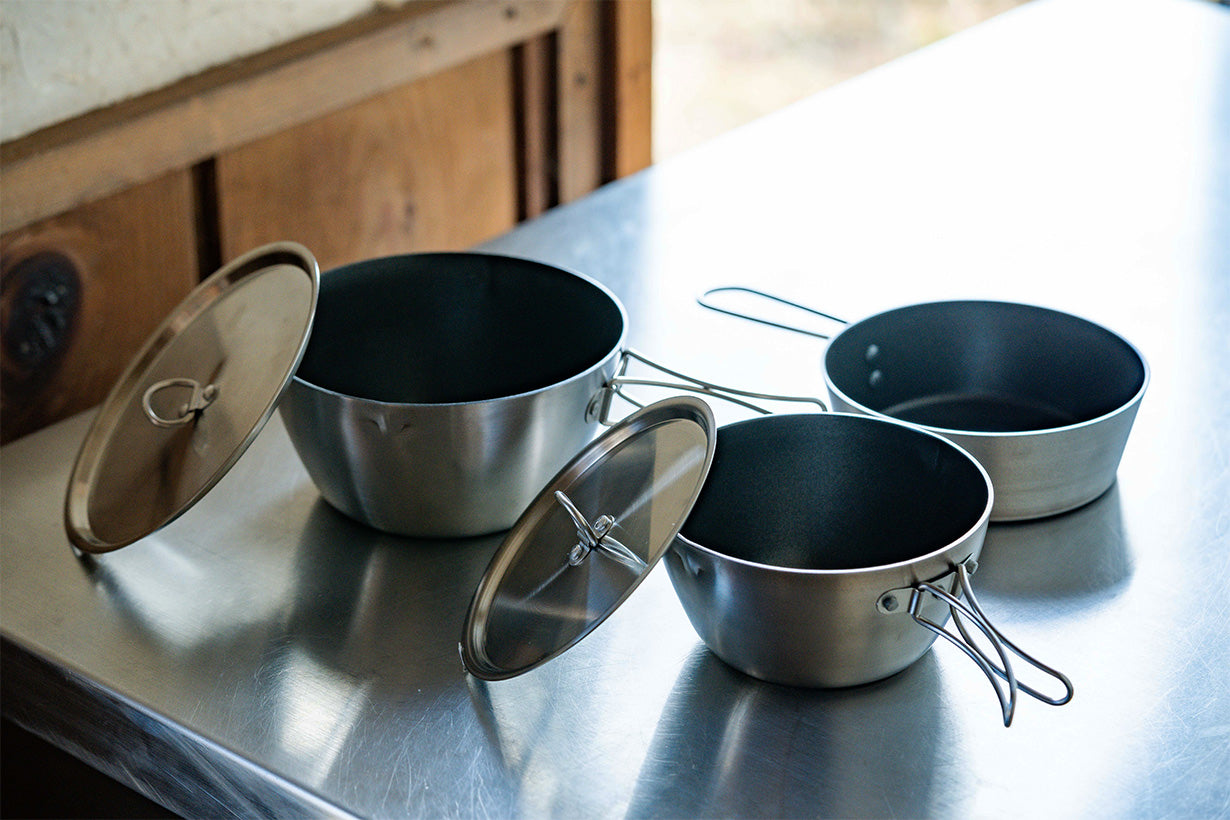 新潟県燕三条の技術を凝縮。ステンレス×アルミ×フッ素の3層構造で、お家のコンロもIHも、ソトで焚き火もOKの最強スタイル。直径約20cm、スタイリッシュなデザインも特徴です。